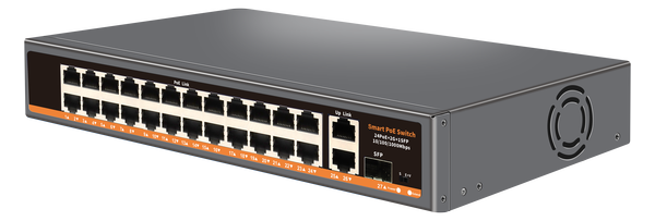 PoE switch sa 24 PoE porta (100Mbps) i 2 uplink porta za IP video nadzor.
