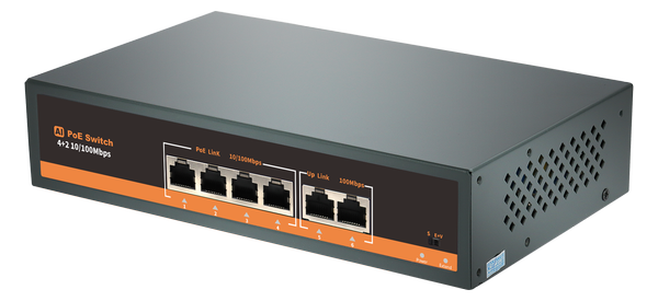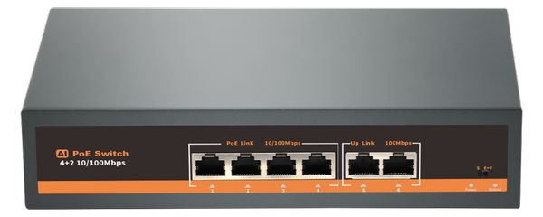 PoE switch sa 4 PoE porta (100Mbps) i 2 uplink porta za IP video nadzor.