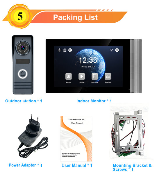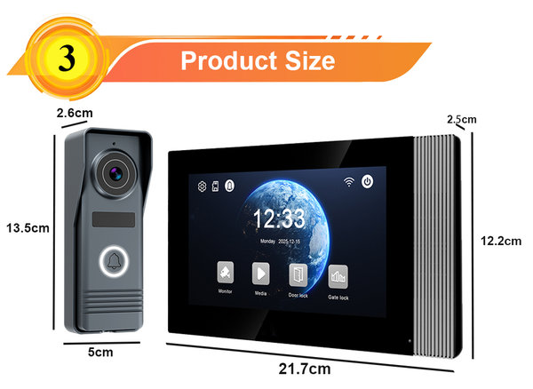 Video interfon set za 1 korisnika sa 7′ LCD monitorom i Full HD kamerom.